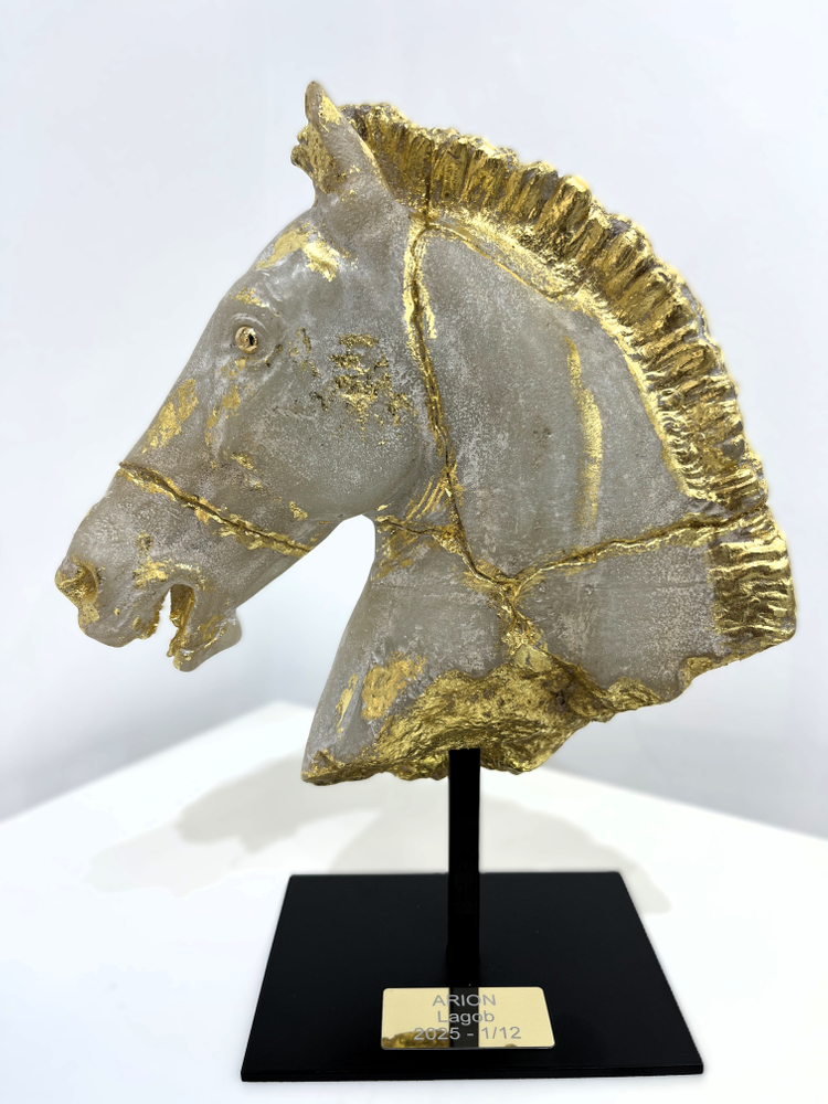 H28x22x9.5 cm - Résine composite / yeux en or 18K / feuilles d'or 22K